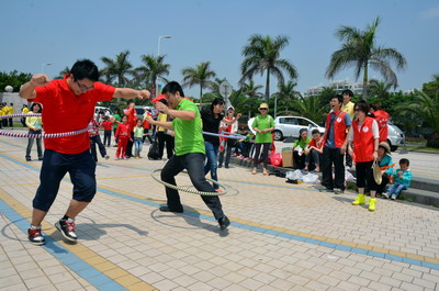 陽光明媚、海浪輕拍,大雨洗滌過的海濱分外清新。員工和官兵代表們絡(luò)繹不絕、配合默契撿拾木棧道沿途垃圾,志愿者紅色馬甲與海軍藍(lán)色制服錯落分布,構(gòu)成海灘一道獨特亮麗的風(fēng)景線。員工子女們也顧不得滿頭大汗,興沖沖地?fù)炱鸨缓K疀_上岸的雜物,用心體會著環(huán)保的理念和勞動的快樂。音樂廣場上的拔河比賽和趣味游戲?qū)F(xiàn)場氣氛推向高潮。來自集團和海軍南方局的16支代表隊奮力拼搏,拉拉隊員激情吶喊,充分展現(xiàn)了廣大員工和現(xiàn)代軍人團結(jié)拼搏的精神風(fēng)貌。經(jīng)過激烈角逐,象嶼碼頭、海軍南方局代表隊拔得頭籌,分獲甲、乙組冠軍。由貿(mào)易、建設(shè)、速傳、資產(chǎn)四家工會精心準(zhǔn)備的趣味游戲吸引了眾多員工及家屬參與,“龍鳳戲珠”、“呼啦行進”、“勇闖長繩”、“向快樂出發(fā)”等環(huán)節(jié)異彩紛呈,歡呼聲、叫好聲,高潮迭起。