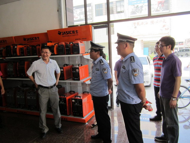 民警認(rèn)真對(duì)商戶提出的安全生產(chǎn)問(wèn)題進(jìn)行解答