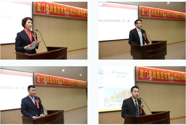 2014年1月19日,象嶼集團2013年度先進集體先進個人表彰大會在廈門國際航運中心隆重舉行。這是一場鼓勵先進、樹立榜樣、傳承象嶼文化、弘揚象嶼精神的大會,更是振奮精神、鼓舞士氣、動員全體象嶼人深化戰(zhàn)略轉(zhuǎn)型的誓師大會。會議表彰了廈門速傳物流發(fā)展股份有限公司等“十佳企業(yè)”、廈門象嶼股份有限公司業(yè)務(wù)九部等“十佳團隊”和天津象嶼進出口貿(mào)易有限公司王艷紅等“十佳員工”。這群勇?lián)熑蔚南髱Z人,不甘人后地爭作先鋒,乘勢而為,著力推動資源整合、模式創(chuàng)新、業(yè)務(wù)轉(zhuǎn)型。他們是象嶼實現(xiàn)可持續(xù)發(fā)展和公司價值最大化的主力軍,萬馬奔騰,催動各行業(yè)各公司3000多象嶼人齊頭并進、共鑄輝煌。