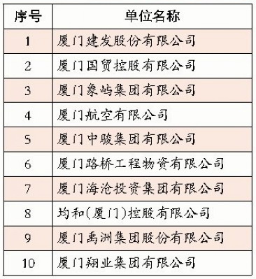 2014廈門服務(wù)業(yè)企業(yè)十強排行榜
