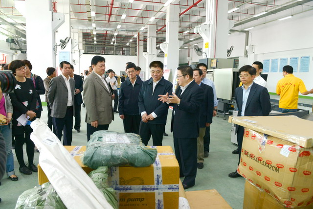 調研現(xiàn)場,王蒙徽書記等市領導聽取了王龍雛董事長、陳方副總裁對廈門跨境電商產(chǎn)業(yè)園情況的介紹,察看了作業(yè)現(xiàn)場。王書記在調研過程中對象嶼集團在自貿(mào)試驗區(qū)推動過程中邊摸索、邊推動,敢于先行先試,開拓海運快件物流新通路,構建廈門跨境電商產(chǎn)業(yè)園的新思維、新模式給予了肯定,對海關、國檢給予的鼎力合作支持表示感謝。