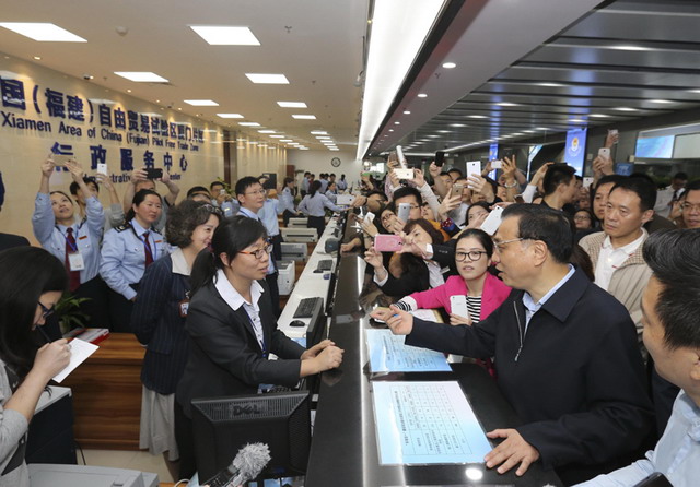 總理來(lái)了!由象嶼集團(tuán)開(kāi)發(fā)運(yùn)營(yíng)的兩岸貿(mào)易中心火了!李克強(qiáng)4月22日在福建自貿(mào)區(qū)廈門(mén)片區(qū)象嶼綜合服務(wù)大廳了解簡(jiǎn)政放權(quán)和商事制度改革等情況??偫碚f(shuō),自貿(mào)區(qū)不是政策洼地而是改革高地,要大膽闖勇于創(chuàng)。昨天你們掛牌,今天我來(lái)為你們助力!